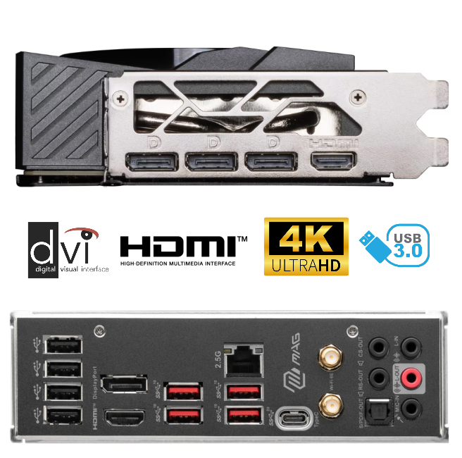 Für die Grafik ist die MSI GeForce RTX 5070 Gaming TRIO OC mit 12GB GDDR6 zuständig – eine Grafikkarte der neuesten Generation mit Raytracing, DLSS 3 und hoher Leistung für 4K-Gaming und grafikintensive Anwendungen.